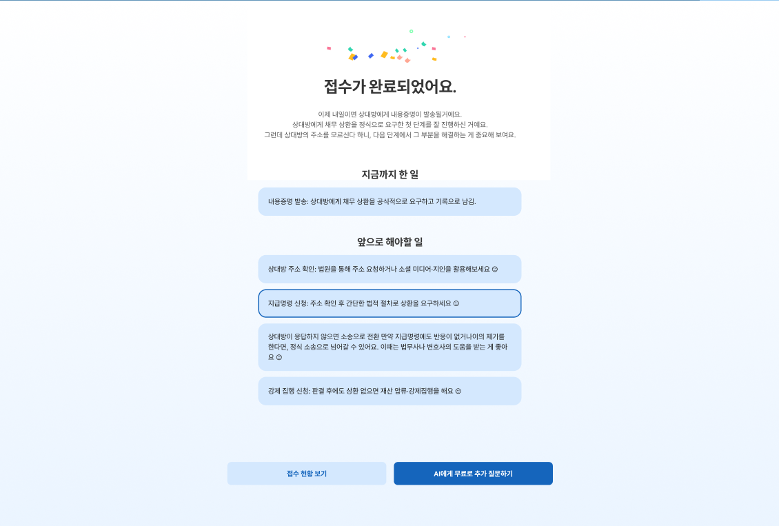 - 전자 내용증명: 상대방이 수취 서명을 하면, 발신자에게 수취 확인서가 자동 발송됩니다.
