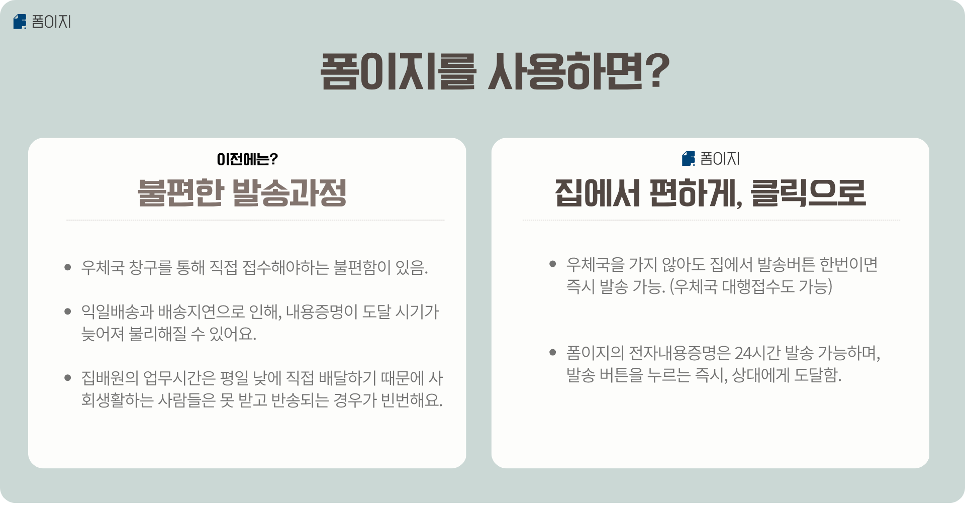 - 폼이지는 전자 내용증명 & 우체국 내용증명을 모두 지원합니다.