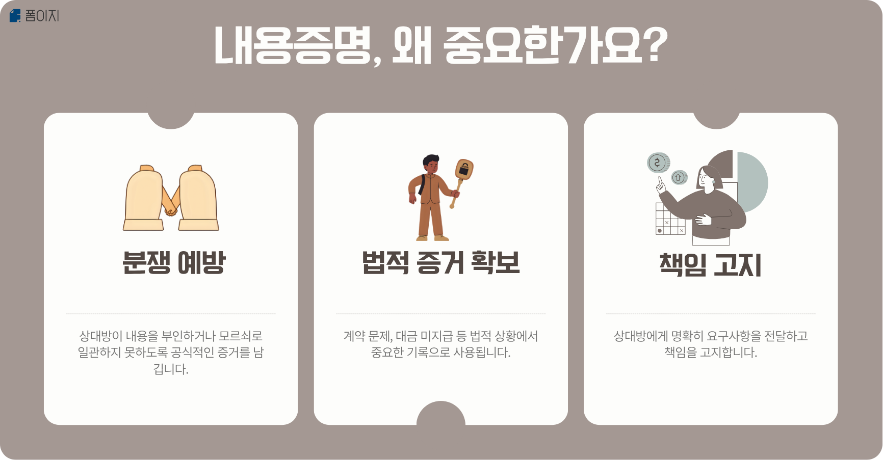 우체국 내용증명: 우체국을 통해 등기우편으로 발송됩니다.